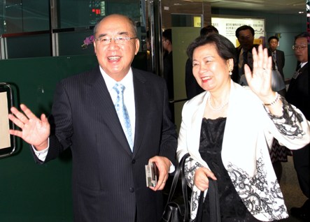 中新網(wǎng)8月7日電 中國國民黨主席吳伯雄夫婦今天上午搭機經(jīng)由香港前往北京,將出席明天的北京奧運開幕式。他說,全球幾十億人都關注的奧運,臺灣不能缺席,也希望臺灣選手能夠奪牌揚威。