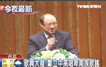 中新網(wǎng)4月19日電 據(jù)臺(tái)灣“中央社”報(bào)道,海峽兩岸關(guān)系協(xié)會(huì)常務(wù)副會(huì)長鄭立中18日歌興大發(fā),在海峽交流基金會(huì)的晚宴上高唱卑南族(臺(tái)灣少數(shù)民族族群之一)歌謠“我們都是一家人”,還用閩南語祝愿“健康、平安、順利”,舉杯“乎干啦”。