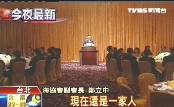 鄭立中晚間也再次談起晚宴提到的“冬季到臺(tái)北來看雨”這首歌,可惜他不會(huì)唱了。不過當(dāng)晚的氣氛讓他想唱首歌,歌名就叫“我們都是一家人”,唱完之后他還謝謝大家“在精神上付出的損失”。