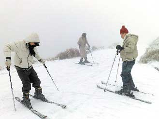 義守大學(xué)學(xué)生陳泉潣和讀暨南大學(xué)的表弟候鈞元,扛著12公斤裝備上合歡山,“沒想到臺(tái)灣也能滑雪!”他滑了好多趟,都沒摔跤,“追雪、賞雪不稀奇,到合歡山滑雪才夠酷!”