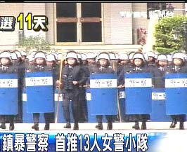 中新網(wǎng)3月11日電 臺灣地區(qū)領導人選舉只剩倒數(shù)11天。為防止任何民眾太過激情而發(fā)生意外,臺灣警政部門特地展示520人組成的鎮(zhèn)暴警隊,首次加入一支女性組成的小隊。
