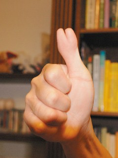陳姓男子說,“大選”情緊繃,藍(lán)、綠立場愈來愈鮮明,他的右手大拇指硬是比別人多出一個指頭,時機敏感,他自嘲處境尷尬,豎大拇指,泛綠朋友恐錯當(dāng)他比V,平日跟支持馬蕭的友人在一起,比起大拇指,明明就是V,就是支持2號馬英九,但又怕支持泛藍(lán)的朋友誤會他比“1”,是挺綠的。