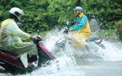 臺灣北部昨天午后雷陣雨也來勢洶洶,從桃園縣到臺北縣市均發(fā)生每小時超過50毫米的“時雨暴”,桃園縣大溪當(dāng)日下午一時到二時降雨達(dá)68.5毫米;臺北當(dāng)日中午十二時到下午一時也出現(xiàn)54毫米“時雨暴”,部分街道積水不退。