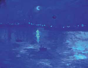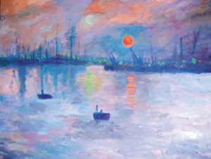 中新網(wǎng)7月9日電 莫內(nèi)名畫(huà)“印象‧日出”,也有“日落”、“夜幕”版嗎?據(jù)臺(tái)灣《聯(lián)合報(bào)》報(bào)道,臺(tái)大機(jī)械工程系教授黃秉鈞利用調(diào)控投射在名畫(huà)上的彩色LED光源,制造出名畫(huà)不同風(fēng)貌,發(fā)展出嶄新的“LED歐普藝術(shù)”。