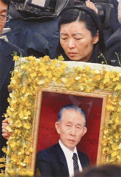 中新網(wǎng)10月18日電 據(jù)臺灣《聯(lián)合報》報道,臺塑創(chuàng)辦人王永慶的靈柩,昨天上午八時從桃園機場移至桃園縣龜山鄉(xiāng)長庚大學(xué)活動中心,當(dāng)二房長子王文洋捧著靈位,三房長女王瑞華捧著黃花鑲邊的遺像,跟著扶靈的家眷步入靈堂時,在場人士無不肅穆哀容,悲痛飲泣。
