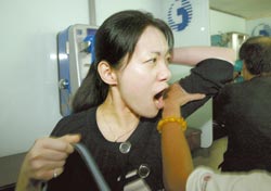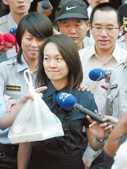 陳幸妤6日在進(jìn)入法庭時(shí)大叫被媒體鏡頭打到。(圖:臺(tái)灣《中國(guó)時(shí)報(bào)》)
