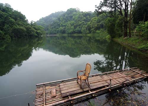 大陸房地產(chǎn)訪問團二十二日參訪臺灣桃園后慈湖,SOHO中國公司董事長潘石屹認(rèn)為后慈湖與九寨溝相像,環(huán)境極美。他對兩蔣Q版玩偶也感到很好奇,并留影紀(jì)念!爸醒肷纭 圖 邱俊欽 攝