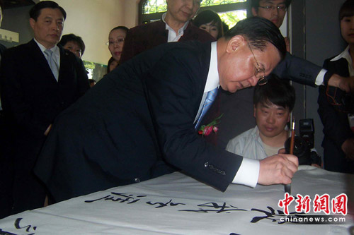 中新網(wǎng)杭州5月2日電(記者 汪恩民)5月2日,“朱炳仁、楊奉琛兩岸兩人藝術(shù)展”在杭州西湖博覽會(huì)博物館開幕,中國國民黨榮譽(yù)主席連戰(zhàn)出席了開幕儀式并親筆題詞道賀。