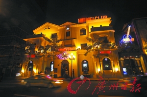 從珠江南岸向北岸遠遠望去,這幢新裝修的酒吧格外醒目,建筑屋頂豎起的“HEIHEICLUB”和“喜喜”招牌上,霓虹燈的裝飾閃閃發(fā)光。而在建筑的北面墻體上,整幅墻體布滿酒吧的招牌。很難相信,這樣一幢充滿商業(yè)氣氛的建筑,就是昔日肅穆的黃埔軍校駐省辦事處、黃埔軍校同學(xué)會、中國青年軍人聯(lián)合會舊址。