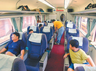 據(jù)了解,這趟行程源起于“監(jiān)委”慕南回郵輪列車之名,由“監(jiān)院”排定日期,但郵輪列車是不定期推出,加上臺鐵不敢怠慢,才派出最高級的商務(wù)彩繪列車。商務(wù)車基本配備為三節(jié)客車車廂,加上一節(jié)有卡拉OK設(shè)備及一節(jié)可提供餐飲服務(wù)的客廳車?蛶侨乓巍⒁还(jié)有三十三個(gè)座位,另兩節(jié)車廂可提供二十七個(gè)位置,全車共一百二十六個(gè)座位。