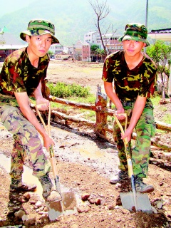 連日來,各地臺軍部隊陸續(xù)進(jìn)入桃源鄉(xiāng)救災(zāi),目前還有一百三十五名官兵留在斷水?dāng)嚯姷臑?zāi)區(qū),每天用山泉水洗澡,晚上睡在小學(xué)校園。