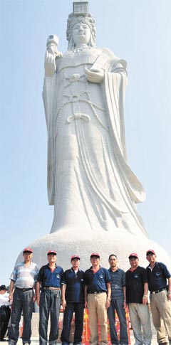 縣府文化局專員吳曉云說,縣府大力爭取當(dāng)局支持興建媽祖巨神像,并邀請“立法院長”王金平出任籌備會(huì)榮譽(yù)主委,今年6月動(dòng)土興建,10月初完成高達(dá)28.8公尺的巨像,全部以花崗巖打造,是全世界最高的媽祖巨石神像,日前舉行開光儀式,25日于“媽祖升天祭”大典中正式揭幕。