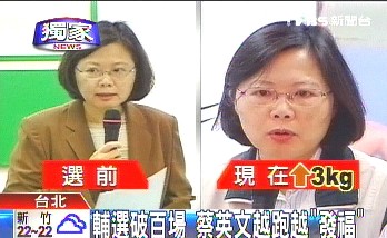 蔡英文本來(lái)就不是瘦尖臉形,現(xiàn)在看起來(lái)雙頰下巴更成了一道圓弧線,體重增加3公斤,賣力抬轎,怎么會(huì)越抬自己越福態(tài)?