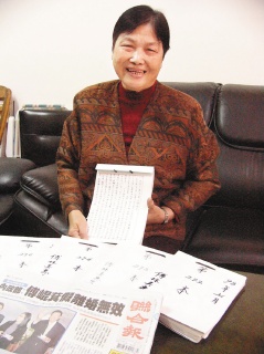 中新網(wǎng)12月24日電 高雄縣前議員傅林美惠每天花一小時(shí),一字一句抄寫聯(lián)合報(bào)社論,27年來(lái)很少間斷,手抄本多達(dá)277本。這是她掌握時(shí)勢(shì)脈動(dòng)、防范老年癡呆的法寶,她得意地說(shuō):“兒孫爭(zhēng)相預(yù)約做為傳家寶呢。”