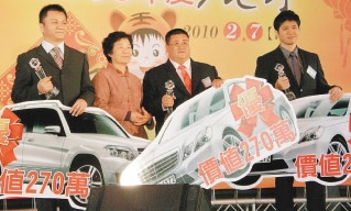 中新網(wǎng)2月8日電 據(jù)臺灣媒體報道,臺中工業(yè)區(qū)一家印刷公司經(jīng)歷金融海嘯,業(yè)績逆勢增長26%,7日辦尾牙,老板張訓(xùn)嘉大手筆送出總價值逾1600萬元(新臺幣,下同)的獎品,包括3輛單價270萬元的奔馳轎車給3名超級業(yè)務(wù)員,讓業(yè)界及勞工們稱羨。