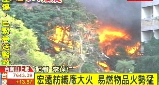位于臺(tái)南縣山上鄉(xiāng)的宏遠(yuǎn)興業(yè)公司廠房,今天上午地震發(fā)生幾分鐘后傳出火警,火勢(shì)由自動(dòng)倉(cāng)儲(chǔ)庫(kù)房開(kāi)始延燒,并波及一旁宿舍區(qū),廠方緊急疏散,初估損失新臺(tái)幣上億元。