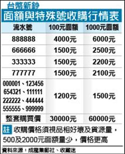 長(zhǎng)期從事錢(qián)幣收藏及研究的收藏家謝錫煌指出,包括新加坡、菲律賓等國(guó),早就把鈔票特別號(hào)拿出來(lái)公開(kāi)標(biāo)售,所得收益捐給公益團(tuán)體,島內(nèi)不妨比照辦理。