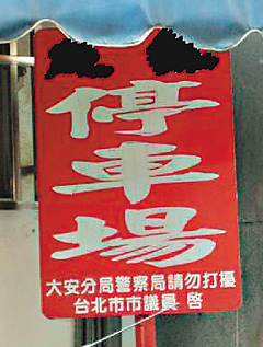 一家位于敦化南路、文昌街口的私設(shè)停車場(chǎng),竟然還掛著“警察局請(qǐng)勿打擾 臺(tái)北市議員啟”的招牌,用來恐嚇取締。