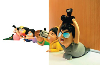 中新網(wǎng)4月29日電 據(jù)臺灣《聯(lián)合晚報》報道,門縫有狗仔隊爬出來!這是臺灣科技大學工商業(yè)設計系張郁青的畢業(yè)制作,原本只是想設計一個公仔防止門一直移動,但她想起電視新聞記者的豐富表情,兩者結合完成有趣的“看門狗”門擋。