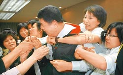 中新網(wǎng)5月11日電 據(jù)臺(tái)灣《中國(guó)時(shí)報(bào)》報(bào)道,臺(tái)“立法院”昨天(10日)首度針對(duì)開放陸生來臺(tái)、承認(rèn)大陸學(xué)歷進(jìn)行“有官員答詢”的委員會(huì)初審,一整天大小沖突不斷。朝野“立委”先為了臺(tái)“教育部長(zhǎng)”吳清基請(qǐng)假不到吵架,下午又為延長(zhǎng)開會(huì)時(shí)間潑水沖突。最后主席張慶忠在偷藏麥克風(fēng)、拉扯、捂嘴的沖突中宣布完成“兩岸人民關(guān)系條例”修正草案初審。