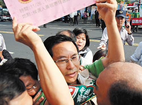 中新網(wǎng)11月25日電 據(jù)臺(tái)灣《聯(lián)合晚報(bào)》報(bào)道,臺(tái)灣“三合一”選舉活動(dòng)正式起跑,民進(jìn)黨嘉義市長(zhǎng)候選人涂醒哲二十五日上午十點(diǎn)到國(guó)民黨嘉義市長(zhǎng)候選人黃敏惠競(jìng)選總部下戰(zhàn)帖,要求公開(kāi)辯論,雙方發(fā)生激烈沖突,所幸無(wú)人有明顯外傷。
