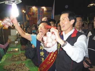 “新埔街上今晚最多人。”陪同掃街的新埔鎮(zhèn)長賴江海說,秋冬晚上八時以后街頭冷清,昨晚全站出來。馬英九接著到二重夜市,夜市里民眾爭相與他握手,他看到蒜攤還拿起蒜頭高喊“凍蒜!”