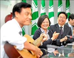 中新網(wǎng)6月3日電 據(jù)臺灣《自由時報》報道,民進(jìn)黨二日成立“五都”選戰(zhàn)小組,由前秘書長吳乃仁擔(dān)任召集人,為年底“五都選舉”擬定策略。黨主席蔡英文在歡送秘書長蘇嘉全參選大臺中市長記者會上,兩人“答嘴鼓”。蘇嘉全還拿著吉他對著蔡英文唱情歌,蔡英文尷尬地笑了出來。
