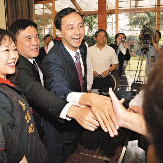 中新網(wǎng)6月3日電 據(jù)臺灣《聯(lián)合晚報》報道,臺灣“雙城大戰(zhàn)”開始加溫! 國民黨臺北市長參選人郝龍斌與新北市長參選人朱立倫,以“黃金十年、北北共榮”為題,3日上午首度舉行聯(lián)合記者會,兩人雙手緊握、雙方助選團隊人馬與民代一字排開,“凍蒜”、加油聲不斷,營造雙城合作的氣勢。
