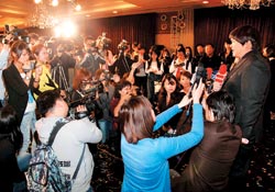 記者會(huì)上,SONY播小胖的歷程VCR,他也高唱成名曲〈I Will Always Love You〉,看到臺下成群結(jié)隊(duì)的粉絲,拿著“小胖”、“加油”的牌子,他突然哽咽:“謝謝你們,我一定會(huì)加油,不辜負(fù)大家的期望!彪S即拿起手帕拭淚,笑稱:“我鼻酸,感覺很激動(dòng),淚水混著汗水掉下來了。”大陸SONY歌手李易峰和蘇醒,分別吆喝自己粉絲,到場替師弟小胖加油打氣。
