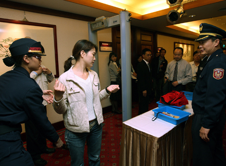 據(jù)臺(tái)灣中時(shí)電子報(bào)報(bào)道,陳水扁出席活動(dòng)之前,所有與會(huì)人員在會(huì)場(chǎng)外大排長(zhǎng)龍,等候接受安全檢查。由于陳水扁自爆全家遭恐嚇,安檢規(guī)格等級(jí)提高,要求所有來賓不但要主動(dòng)打開背包,還要脫下外套給安檢人員驗(yàn)看,強(qiáng)制接受安檢。