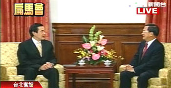 陳水扁一見面先對馬英九高票當(dāng)選表達恭喜,并強調(diào),今天是兩人選后第一次會面,但絕對不是最后一次。