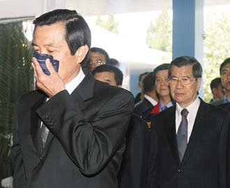 馬英九、蕭萬長(zhǎng)5日到蔣經(jīng)國(guó)頭寮陵寢謁陵,馬英九感傷落淚。