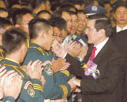 臺陸軍官校慶祝建校84周年,馬英九參加,近距離與學(xué)生接觸。(圖:臺灣《中國時報》)