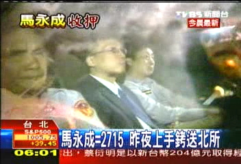 據(jù)臺(tái)灣TVBS報(bào)道,檢方查出,馬永成涉嫌協(xié)助扁家詐領(lǐng)千萬(wàn)元新臺(tái)幣的機(jī)要費(fèi),觸犯侵占和詐取公有財(cái)務(wù)罪,涉嫌重大且有串證之虞,聲押獲準(zhǔn)。馬永成進(jìn)入看守所后將沒有名字,編號(hào)2715,與一名偽造文書的嫌犯同牢房。