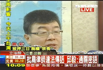 國民黨“立委”邱毅稱,陳水扁十大聲明中“撩落去”的說法疑為陳水扁對外喊話聚眾的通關(guān)密語。圖片來源:臺灣“今日新聞”
