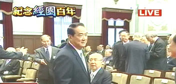 為了紀(jì)念蔣經(jīng)國百年冥誕,李登輝難得重回官邸,在中國國民黨主席吳伯雄的陪同下進(jìn)入會場。最特別的是,這也是李登輝與宋楚瑜兩人近10年來的首度同臺,兩人相隔三個座位一個走道,沒有任何互動。