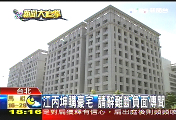 據(jù)臺(tái)灣TVBS報(bào)道,海基會(huì)董事長江丙坤請(qǐng)辭當(dāng)天,傳出原本有媒體要再報(bào)導(dǎo)他的負(fù)面消息,而這負(fù)面消息就是江丙坤家族買豪宅,江丙坤非常在意,盡管請(qǐng)辭心意堅(jiān)決,還是親自出面說明買屋經(jīng)過,而且強(qiáng)調(diào)買賣資金沒有問題,是他跟子女想要重溫一家人聚在一起的感覺,才陸續(xù)把原有的房產(chǎn)賣出,合資購買新屋,不過江丙坤說,其實(shí)他現(xiàn)在住的房子,比新買的房子還要好。
