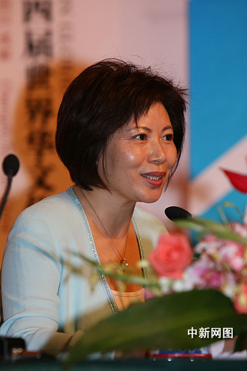 9月4日上午8時(shí)30分,第四屆世界華文傳媒論壇大會舉行“部長論壇”。圖為北京市新聞辦主任、北京市奧組委新聞宣傳部常務(wù)副部長王惠女士為大家講述奧運(yùn)。中新社 張勤 攝。