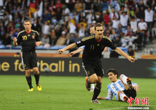 南非世界杯也是這名32歲前鋒在國(guó)家隊(duì)的絕唱。他曾經(jīng)表示,自己將在世界杯結(jié)束后選擇退出國(guó)家隊(duì)。這也意味著他無(wú)緣改寫(xiě)自己的進(jìn)球紀(jì)錄。等下一屆世界杯開(kāi)始的時(shí)候,36歲的他已經(jīng)不可能在新人輩出的德國(guó)隊(duì)謀得一席之地。