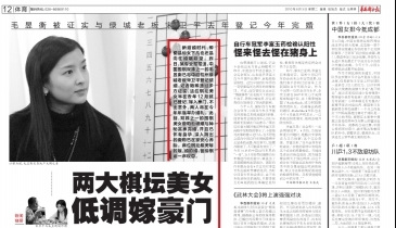 新結(jié)婚時(shí)代,即便是仙女下凡也還是向往婚姻殿堂。昨日,某專業(yè)報(bào)報(bào)道,中國(guó)圍棋雙姝之一的毛昱衡已與中超杭州綠城老板宋衛(wèi)平登記結(jié)婚,記者隨即通過多方證實(shí),這位棋壇美女早在去年12月就已登記,嫁入豪門,不出意外,兩人將在今年年底舉辦婚禮。此前,雙姝之一的圍棋美女唐莉也被爆與神秘富豪完婚,并且已懷有身孕,深入簡(jiǎn)出的唐莉已在家安心養(yǎng)胎。兩位棋壇最美嫁的嫁,婚的婚,留給棋迷一聲嘆息。
