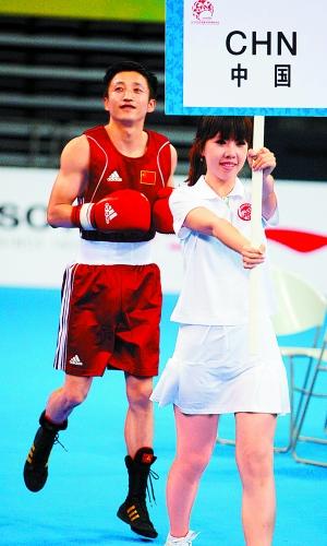 武搏運(yùn)動會拳擊比賽昨晚在奧體中心打響。拳擊項目形象大使、北京奧運(yùn)會冠軍鄒市明亮相男子46至49公斤級1/4決賽,以13比1的巨大優(yōu)勢擊敗一名波蘭選手挺進(jìn)半決賽。別看小鄒在拳臺上揮拳虎虎生風(fēng),但當(dāng)記者提起前來為他助陣的未婚妻時,“拳王”竟然羞紅了臉。