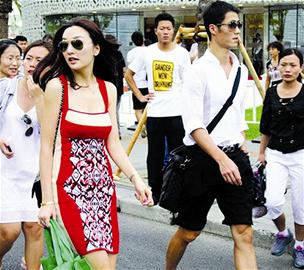 據(jù)拍到這組照片的南方都市報的記者描述,當天在世博園閑逛,準備前往人氣爆棚的沙特館,沒想到見到一位紅衣美女從沙特館貴賓通道出來,十分惹眼。正欣賞如花美眷之時,王勵勤出現(xiàn)了。王勵勤穿著一件白色的中袖襯衣和一條黑色短褲,背著一個名牌包包,看起來心情頗好。兩人走出沙特館后就迅速戴上了墨鏡,并保持至少一米的距離。隨后兩人一路步行,與他們同行的還有王勵勤的父母及另一名年輕女子。那名年輕女子見到有人拍照,馬上上前阻止。路上,紅衣女子與王勵勤的母親談笑風(fēng)生,看得出王勵勤的母親很喜歡她。