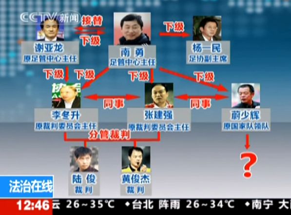 據(jù)中央電視臺報(bào)道,2010年1月21日,公安部證實(shí)中國足協(xié)南勇、楊一民和張建強(qiáng)三名高官被帶走協(xié)查,這證明中國足球的“反賭掃黑”進(jìn)入了“反腐”的新階段。至此,足協(xié)高官的涉案關(guān)系網(wǎng)逐步被揭開。