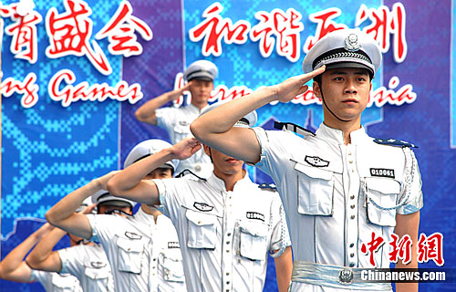 中新網(wǎng)廣州9月25日電 (程景偉)25日,由廣東省公安廳主辦的“警民心連心·平安迎亞運(yùn)”大型主題活動在廣州市體育中心舉行。廣東省政法委書記、公安廳廳長梁偉發(fā)在開幕式致辭中表示,活動目的在于展示警方誓保“平安亞運(yùn)”的決心和信心。