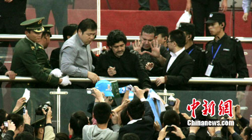 馬拉多納亮相濟(jì)南 未秀球技仍“引爆”全場(chǎng)(圖)(4)
