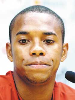 從電視報(bào)道中看到中國政府和軍人的抗震救災(zāi),皇馬球星羅比尼奧非常感慨。