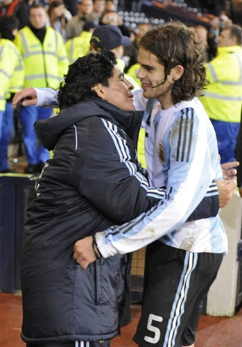 比賽結束后,馬拉多納和加戈擁抱