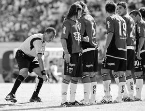 在足球比賽中,雙方隊員都會為直接任意球的罰球點與排人墻的位置發(fā)生爭執(zhí),主裁判也一直為確定人墻和足球保持9.15米的距離而頭疼,F(xiàn)在,阿根廷體育記者帕布羅·席爾瓦發(fā)明的神奇噴霧劑卻有望改變這一局面。在近日舉行的阿根廷秋季甲級聯(lián)賽中,主裁判全部裝備了一種特殊白色噴霧劑,用于幫助確認(rèn)罰球點和人墻的距離,有效減少了球員的爭議。
