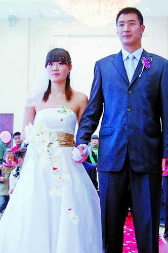 昨天,兩位河南的籃球明星在黃河迎賓館喜結(jié)連理,新郎是原國家隊隊員薛玉洋(現(xiàn)在新疆廣匯隊打球),新娘是河南女籃的程誠。兩人原計劃在2008年8月8日奧運會開幕當(dāng)天大婚,由于訓(xùn)練、比賽任務(wù)繁重,兩人只好提前趁著聯(lián)賽間隙把終身大事給辦了。