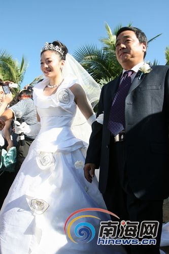 楊云父親帶著女兒走進(jìn)婚禮現(xiàn)場(chǎng)(汪德芬攝)